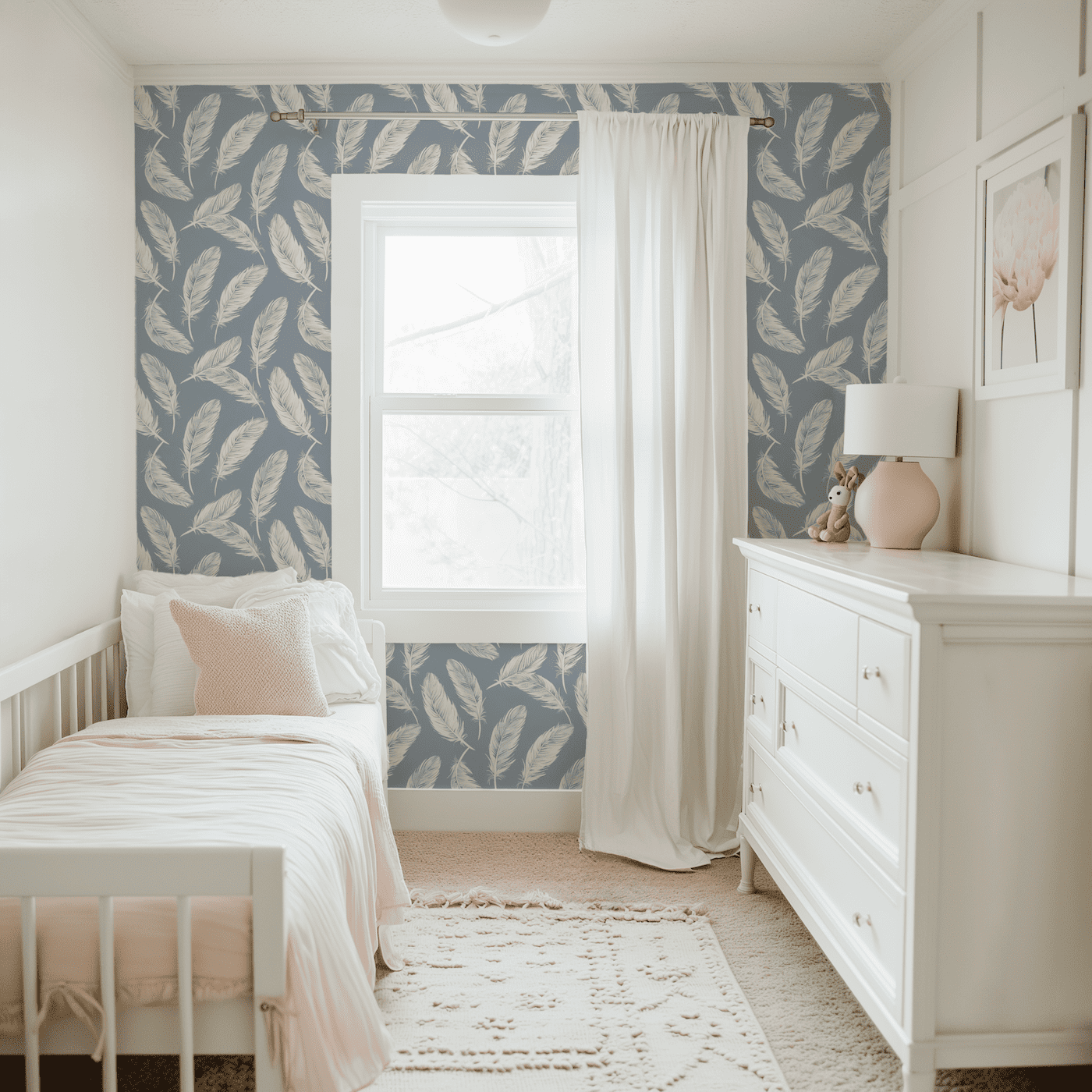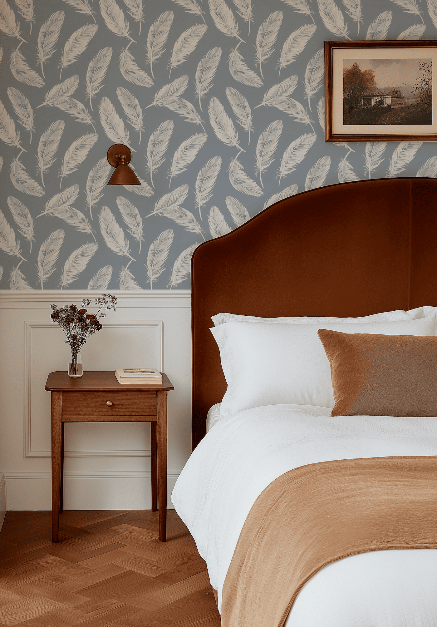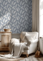 Tapeta z motywem piór w stylu vintage to idealna propozycja do wnętrz, w których dominuje spokój, estetyka i lekkość. Delikatne białe pióra na szaroniebieskim tle nadają pomieszczeniom niepowtarzalny klimat retro. Tapeta Pióra vintage znakomicie sprawdzi się w sypialni, jadalni, przedpokoju czy salonie. Jej stonowana kolorystyka świetnie współgra z meblami w stylu vintage i skandynawskim. Wysoka jakość materiału gwarantuje trwałość i łatwość pielęgnacji. To tapeta na ścianę, która doda wnętrzu klasy i subtelnego uroku.